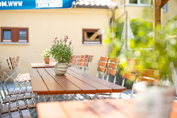 Der Biergarten ist für 70 Personen bestuhlt - eine Bar und ein Gastrogasgrill ist vorhanden (Gasflaschen müssen mitgebracht werden)